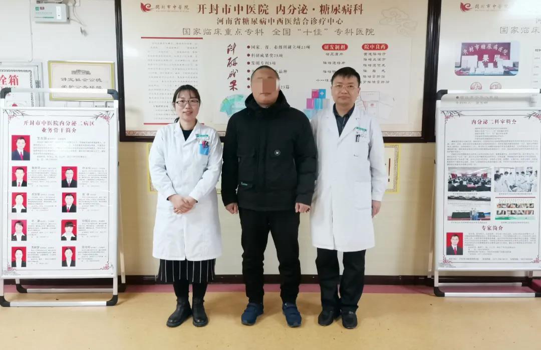 河北省衡水市的病友吴先生,糖尿病多年,之前症状不明显,没有规范治疗,饮食运动也未控制。1个多月前吴先生出现口干、多饮、多尿症状,伴有双足底阵发性麻木,四肢末梢发凉,视物模糊等,测随机血糖高达20mmol/L,吴先生这才开始重视,多方打听后慕名来到开封市中医院内分泌二病区就诊。